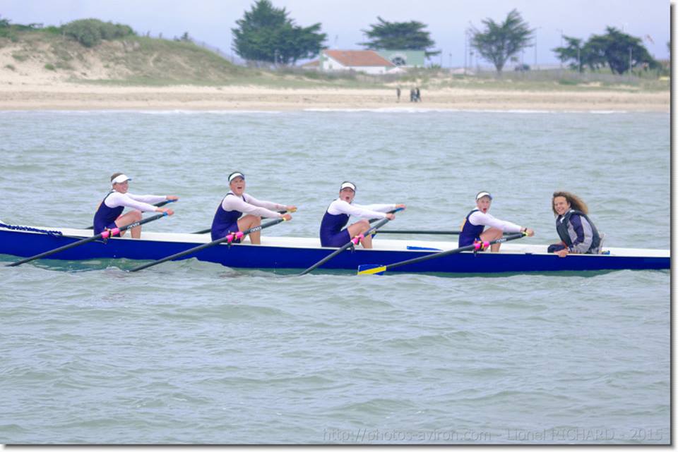 Un beau dimanche qui cogne bien pour clore ce Championnat de Bretagne avec la dernière manche à Saint Quaix Portrieux ! Ce 28 juin, deux doubles et un quatre seront au rendez-vous sous les bannières du REC. Un parcours avec très peu de bouées, "ré n à" voir avec le dernier parcours du championnat de France. De longs bords sans véritable cap à pouvoir cerner de suite. Mais la surprise de ce dimanche c'est aussi le défi du four, un parcours de 3 km, pour les rameurs hardis, n'ayant crainte de mixer équipages masculins et féminins. Ni une ni deux, nous engageons un quatre avec P'tit Seb, Lucile, Raffaella, Sandrine et Clémence à la barre, toutes deux de Saint-Malo.