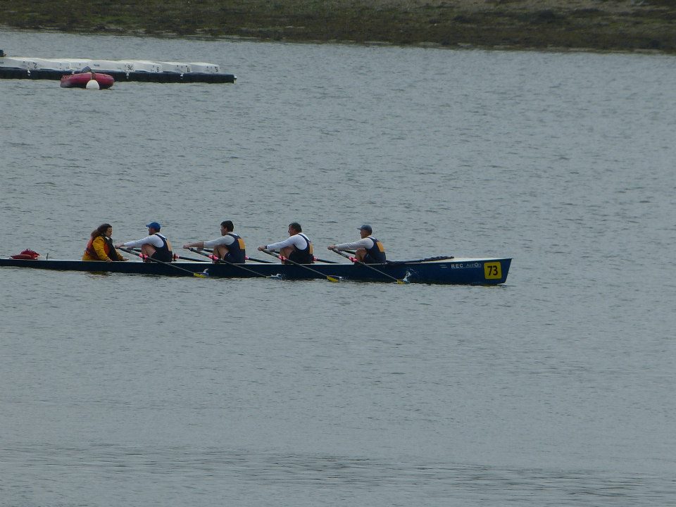 Première série, la mer est à l'étal peu avant le départ, le courant sera donc changé par rapport aux courses féminines. Certes, nous nous y attendions, mais à un changement de conditions pareil, pour sûr non ! La mer a une dent contre nous ? Espérons qu'elle n'en a qu'une. Le premier bord est comme prévu très déterminant et le placement à la première bouée reste ici globalement similaire au résultats finaux. La houle est brutale, le chaos des vagues pointe vers notre faiblesse au REC : notre maigre expérience en mer comparé à la rivière. Le navire est brinquebalé de-ci de-là. Parfois plus de si, parfois plus de la. Finis les appuis solides de la Vilaine, les vagues sont fâchées. Après mi-parcours les places ne bougent plus, et nous nous réjouirons de franchir la ligne d'arrivée, pour un débarquement sur une plage plus docile.